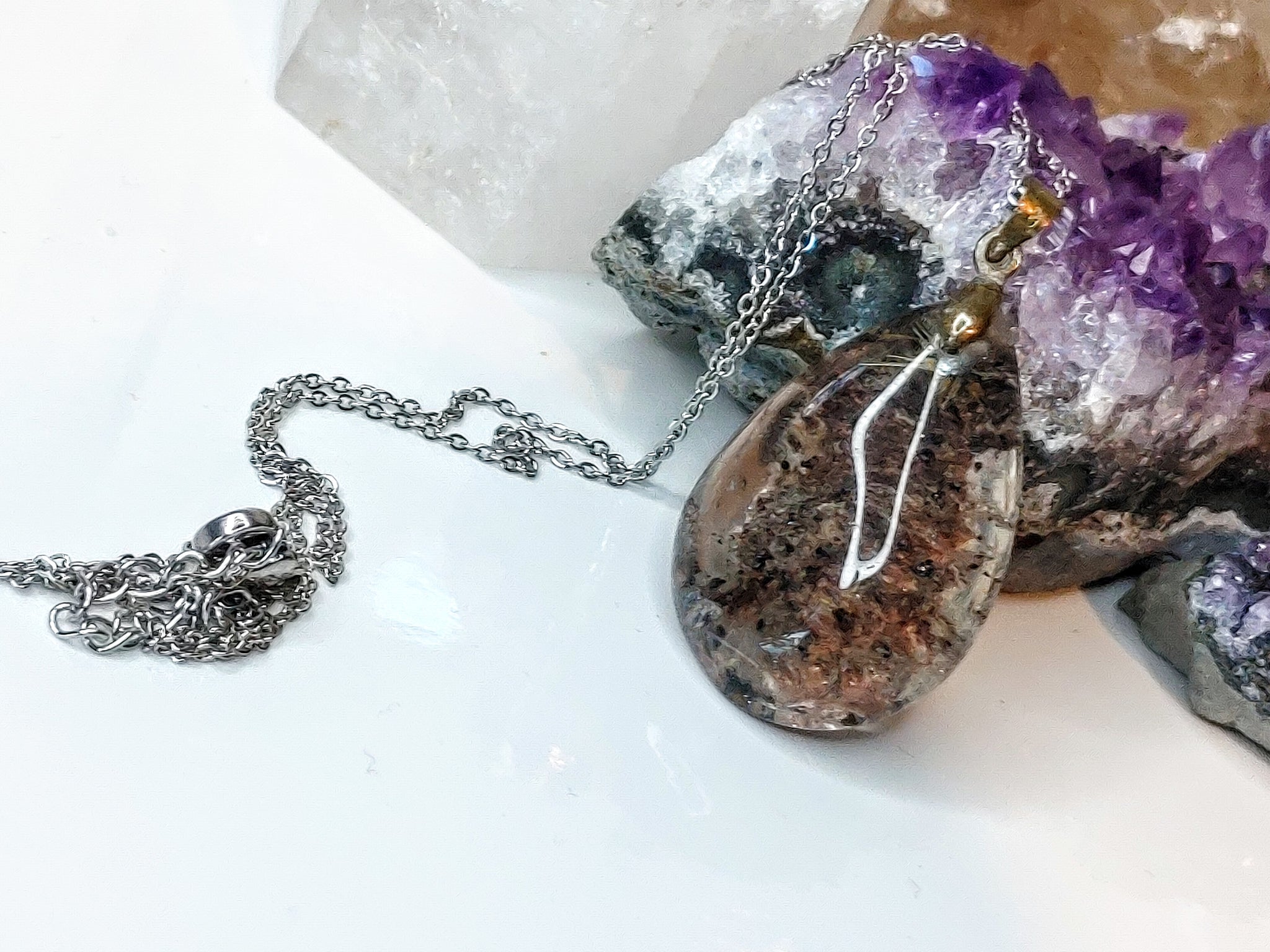 Rutilated Garden Quartz Lodolite Crystal Necklace