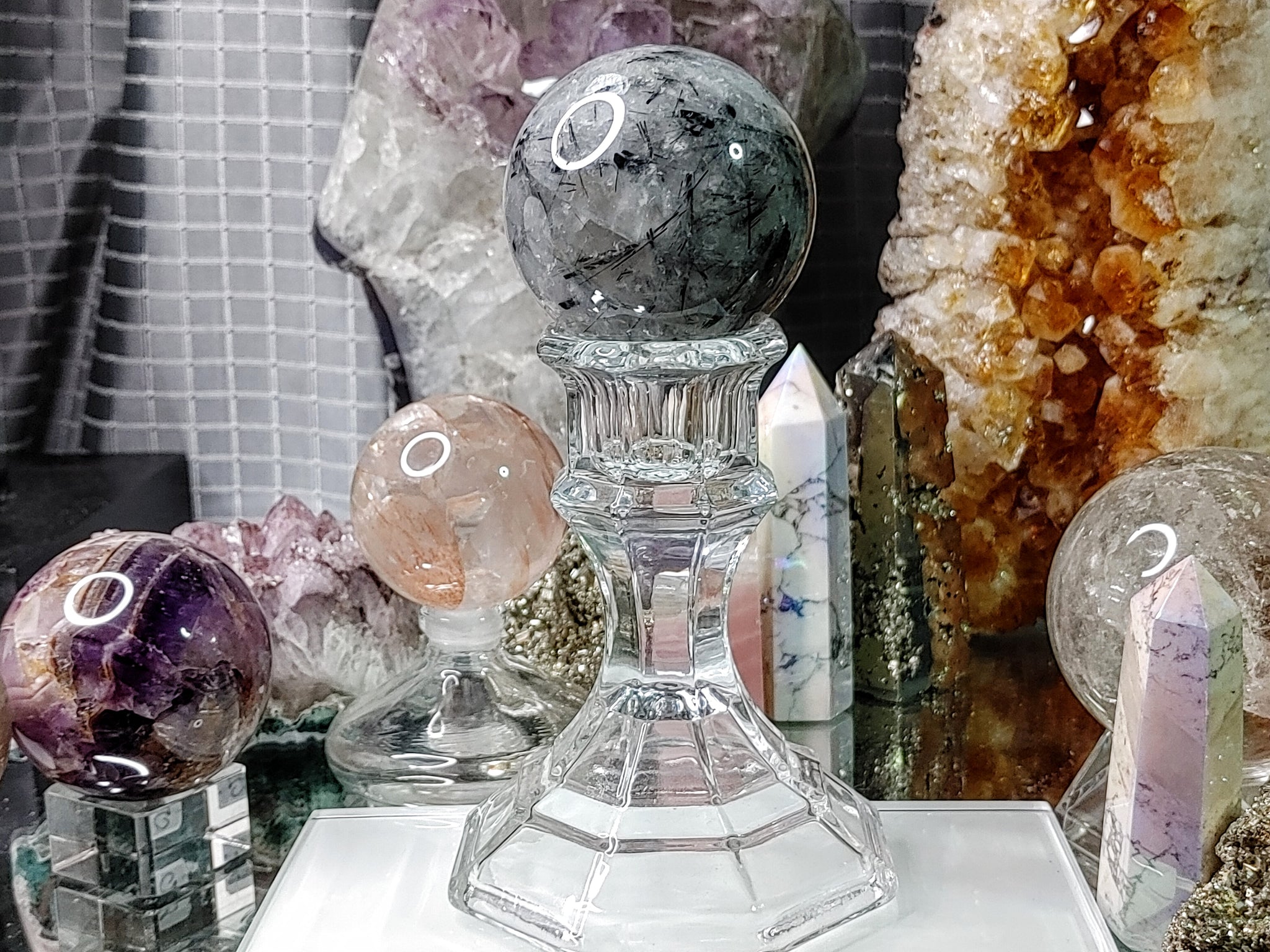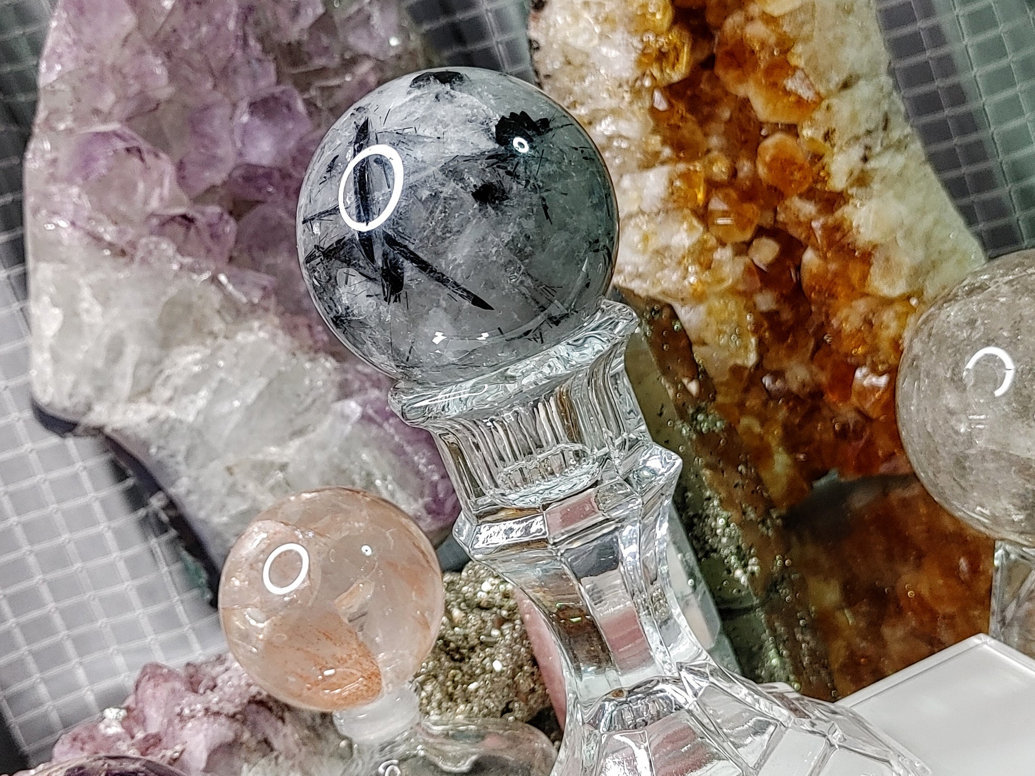 2.5" Black Tourmalinated Quartz Crystal Sphere with Stand