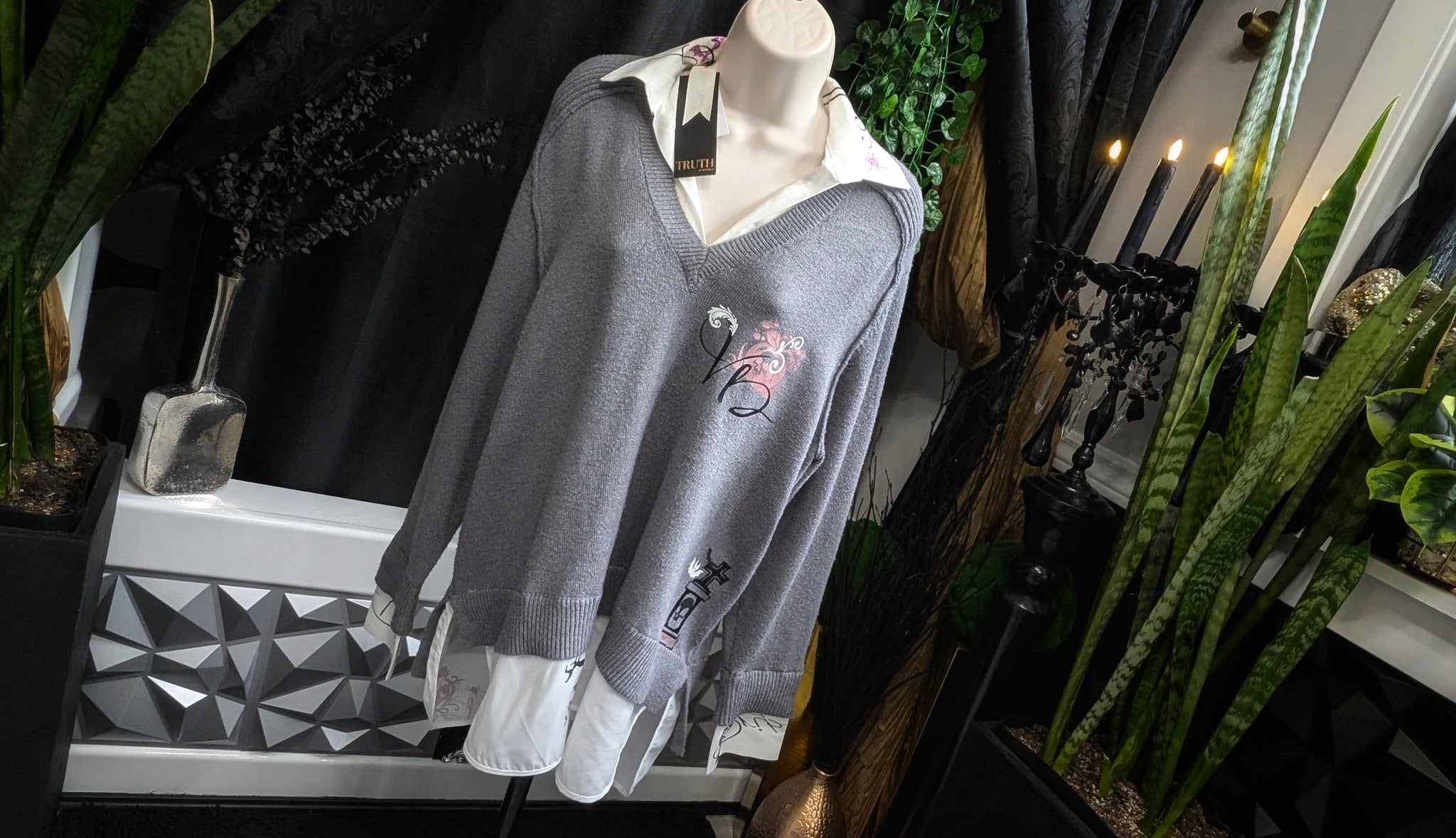 TRUTH by Republic Gothic Collegiate Linen Sweater XL